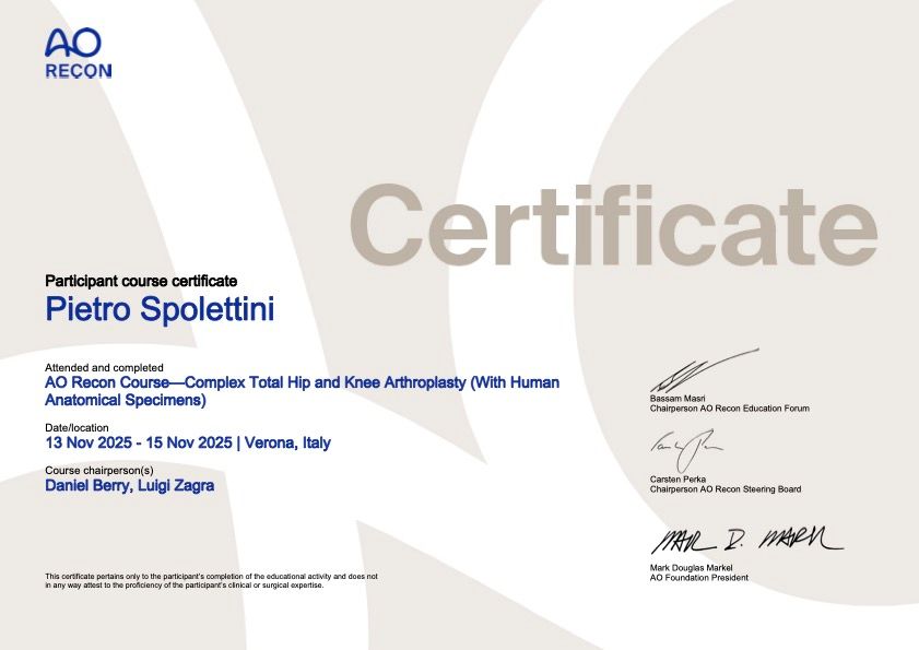 Lavoro presso l'Ospedale San Bortolo di Vicenza, Trauma Center di primo livello e centro di riferimento regionale per la revisione protesica di anca e di ginocchio, dove ho maturato una solida esperienza anche nella gestione delle fratture e nel trattamento dei loro esiti. Nel corso della mia formazione ho frequentato diverse strutture sanitarie, tra cui l’Ospedale Sacro Cuore di Negrar sotto la guida del dott. Claudio Zorzi e il Centro Regionale del Veneto Specializzato in Chirurgia Vertebrale dell'Azienda Ospedaliera di Verona sotto la guida del dott. Massimo Balsano, ampliando le mie competenze in ambito ortopedico.